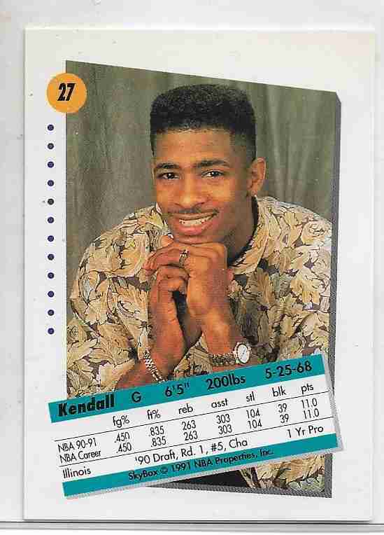 1992 Skybox #27 ~ Kendall Gill Charlotte Hornets Autograph