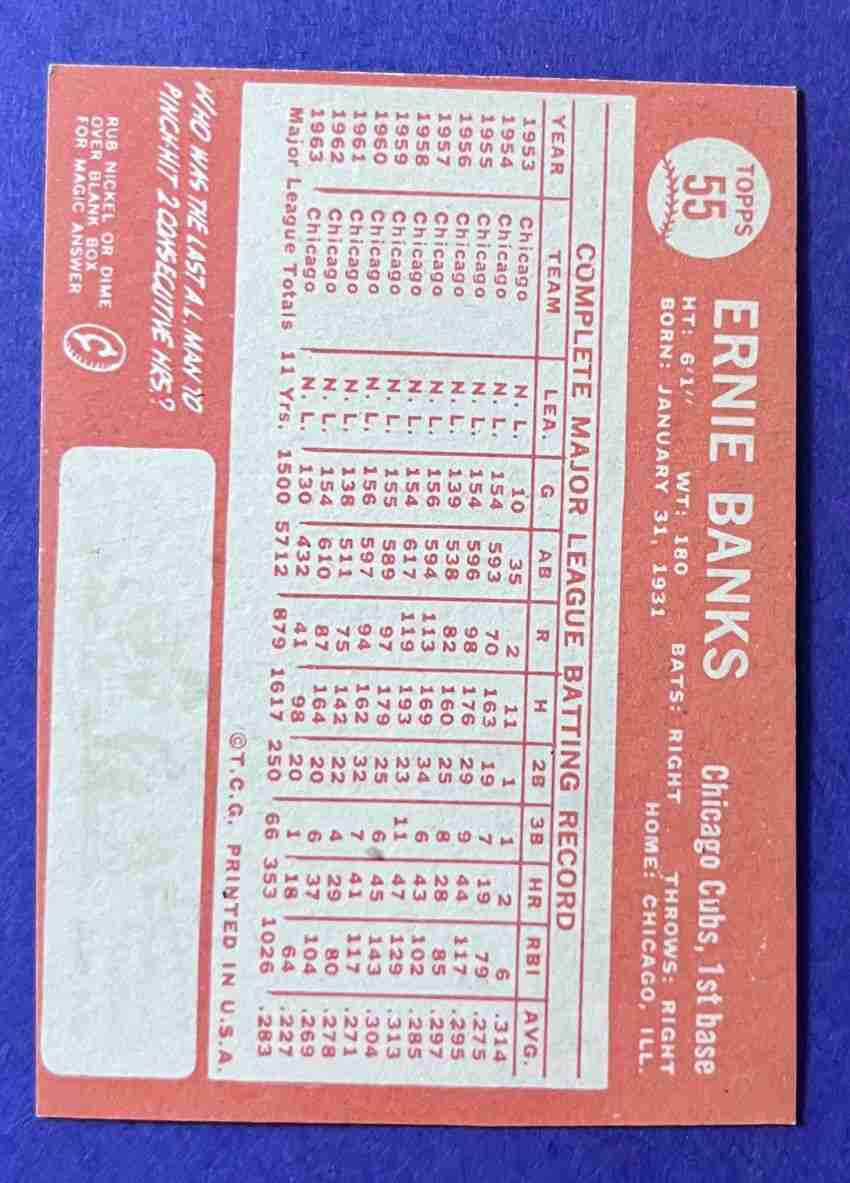 64 Topps ERNIE BANKS #55 HOF!