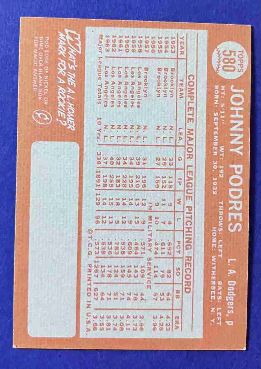 64 Topps JOHNNY PODRES Hi #580 ++