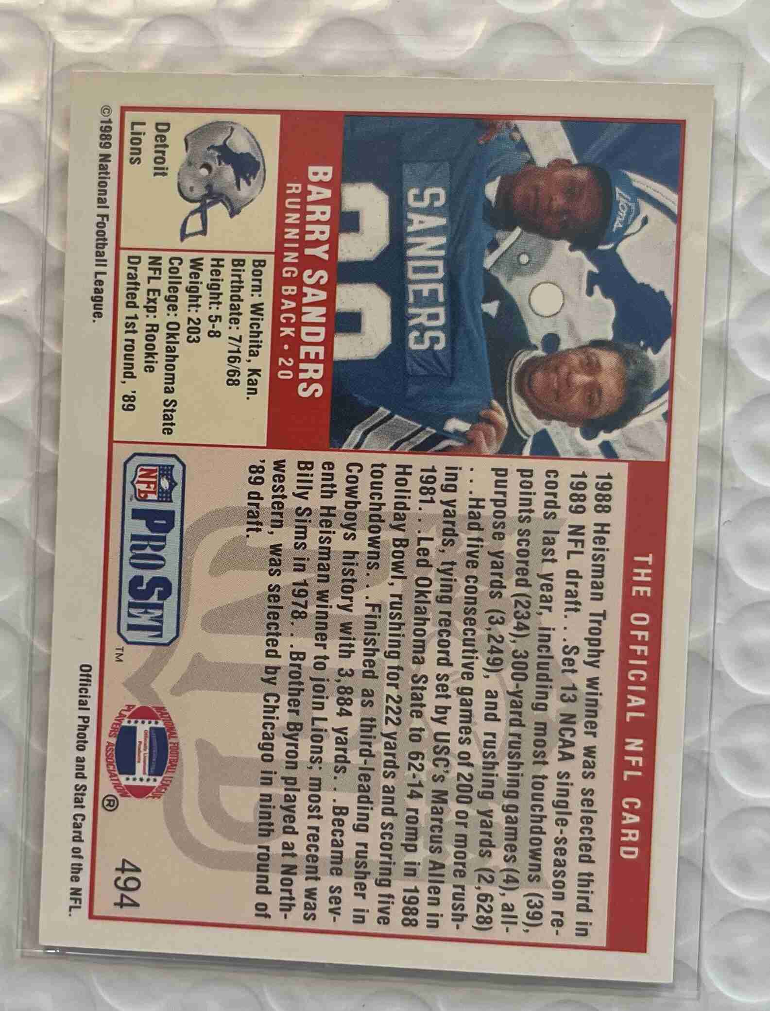 This auction is of a 1989 Pro Set Barry Sanders Rookie card. Card is in Nrmt condition. Look at the pics and judge for yourself. If any questions please feel free to contact me. Thank you for looking at my auctions.