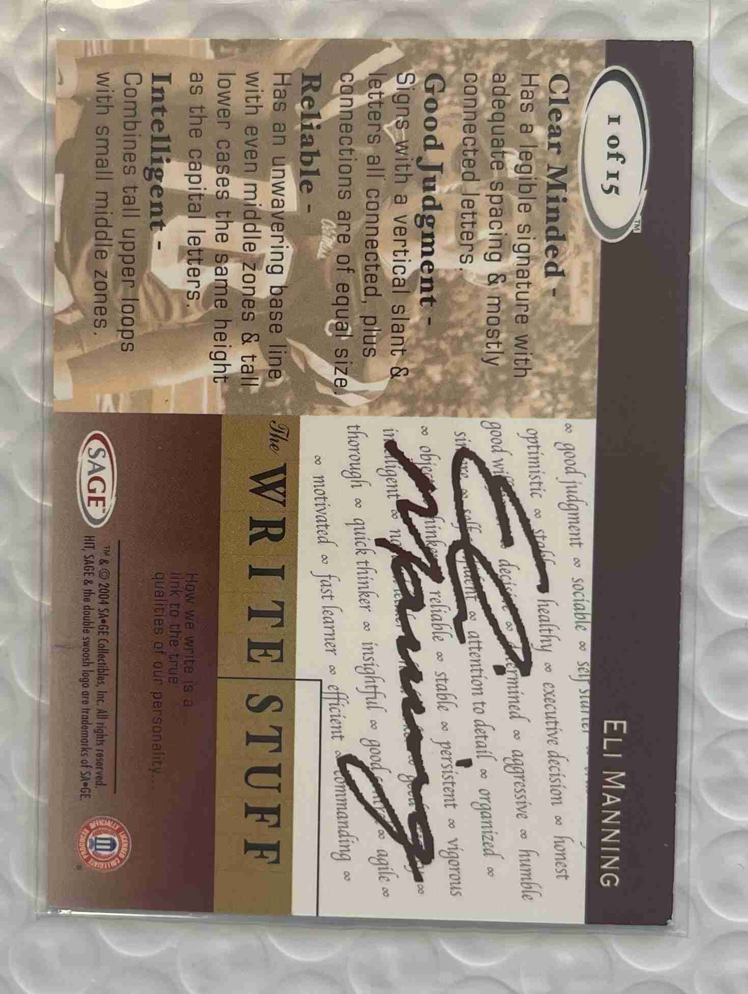 2004 Sage Hit Eli Manning Rookie Insert Card
