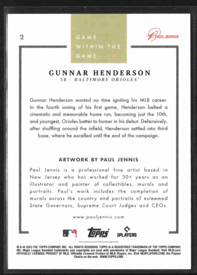 Gunnar Henderson 2023 Topps Game Within the Game #2 Rookie