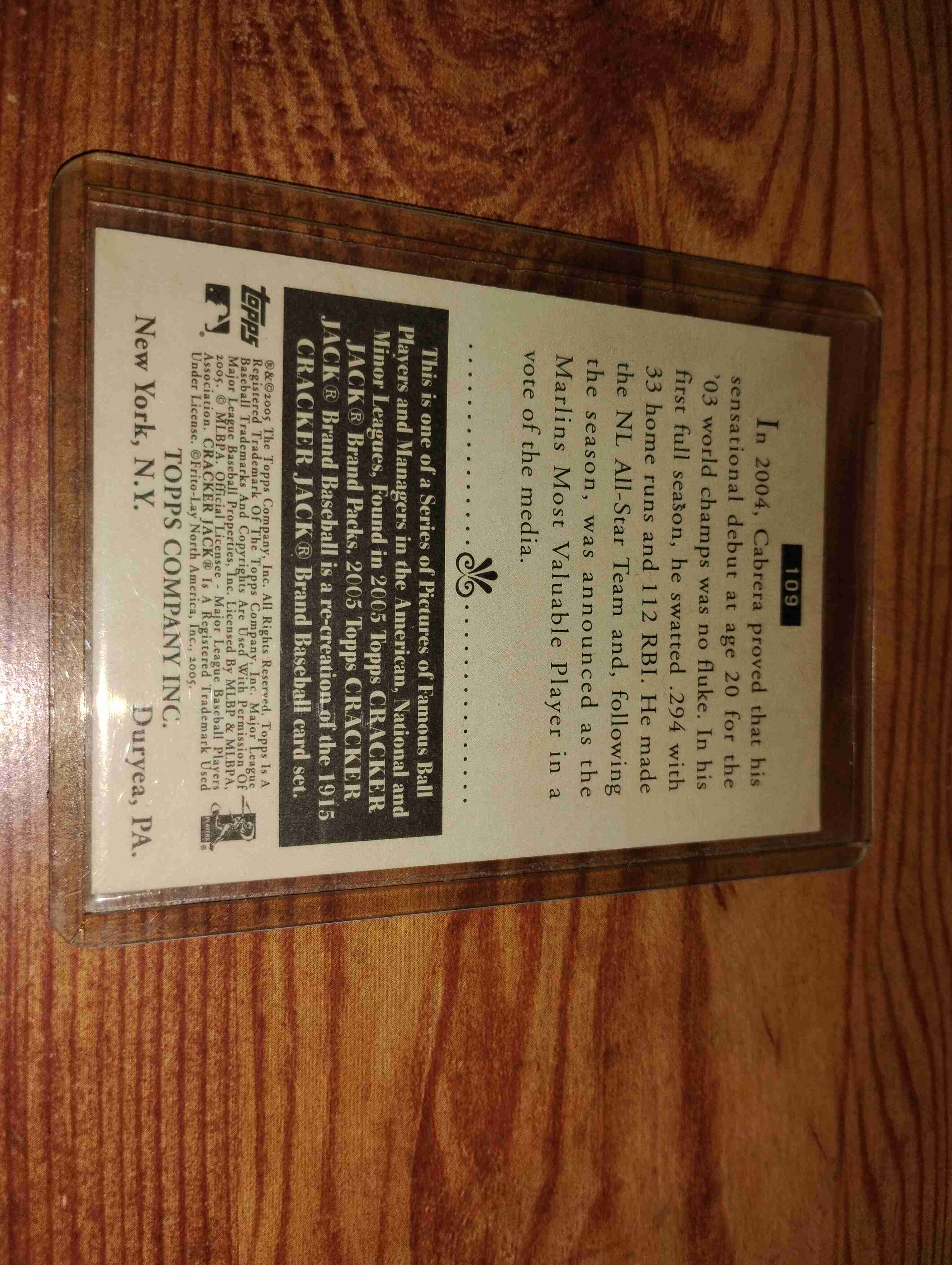 MIGUEL CABRERA 2005 TOPPS CRACKER JACK CARD #109