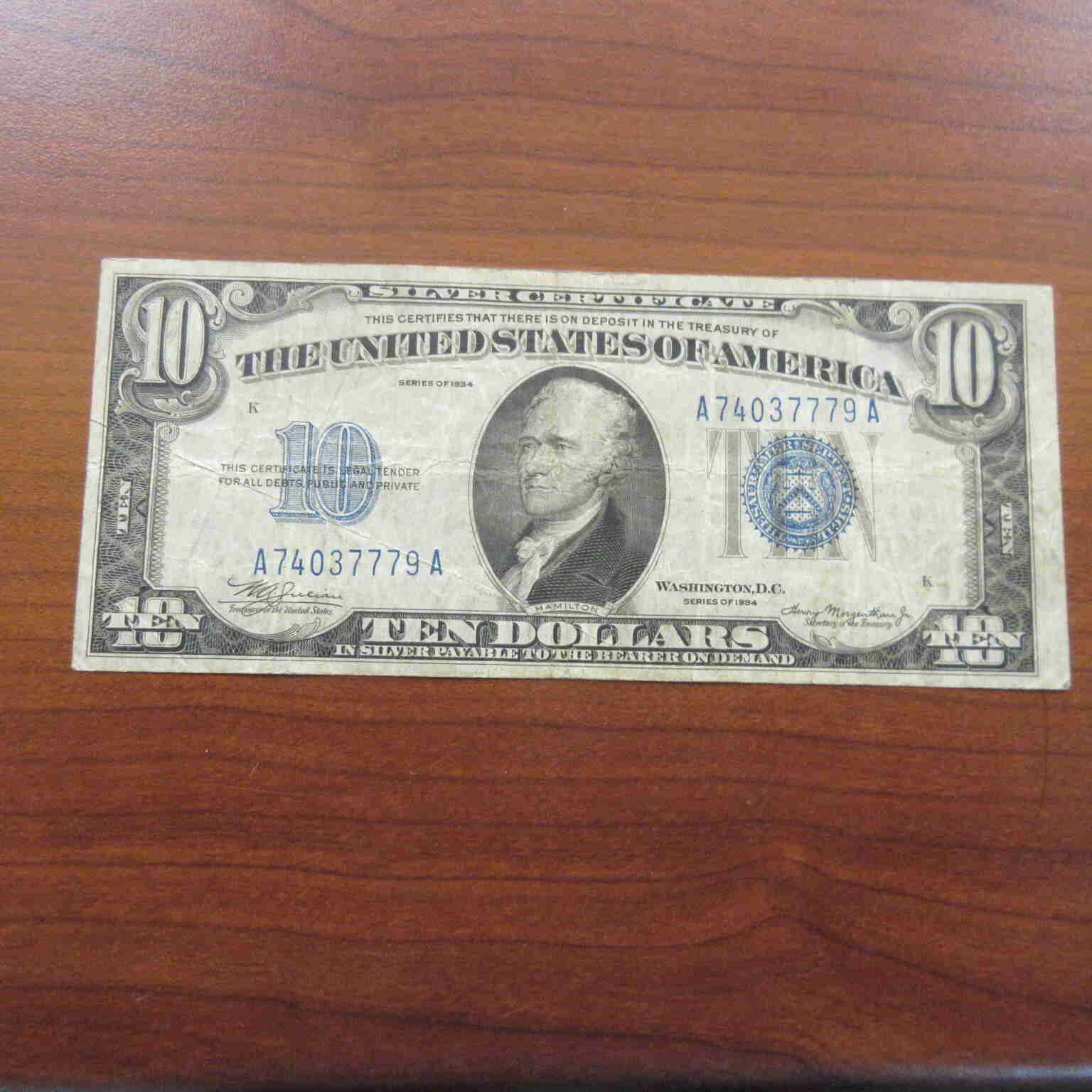 1934 U.S. 10 Dollar Silver Certificate With Error