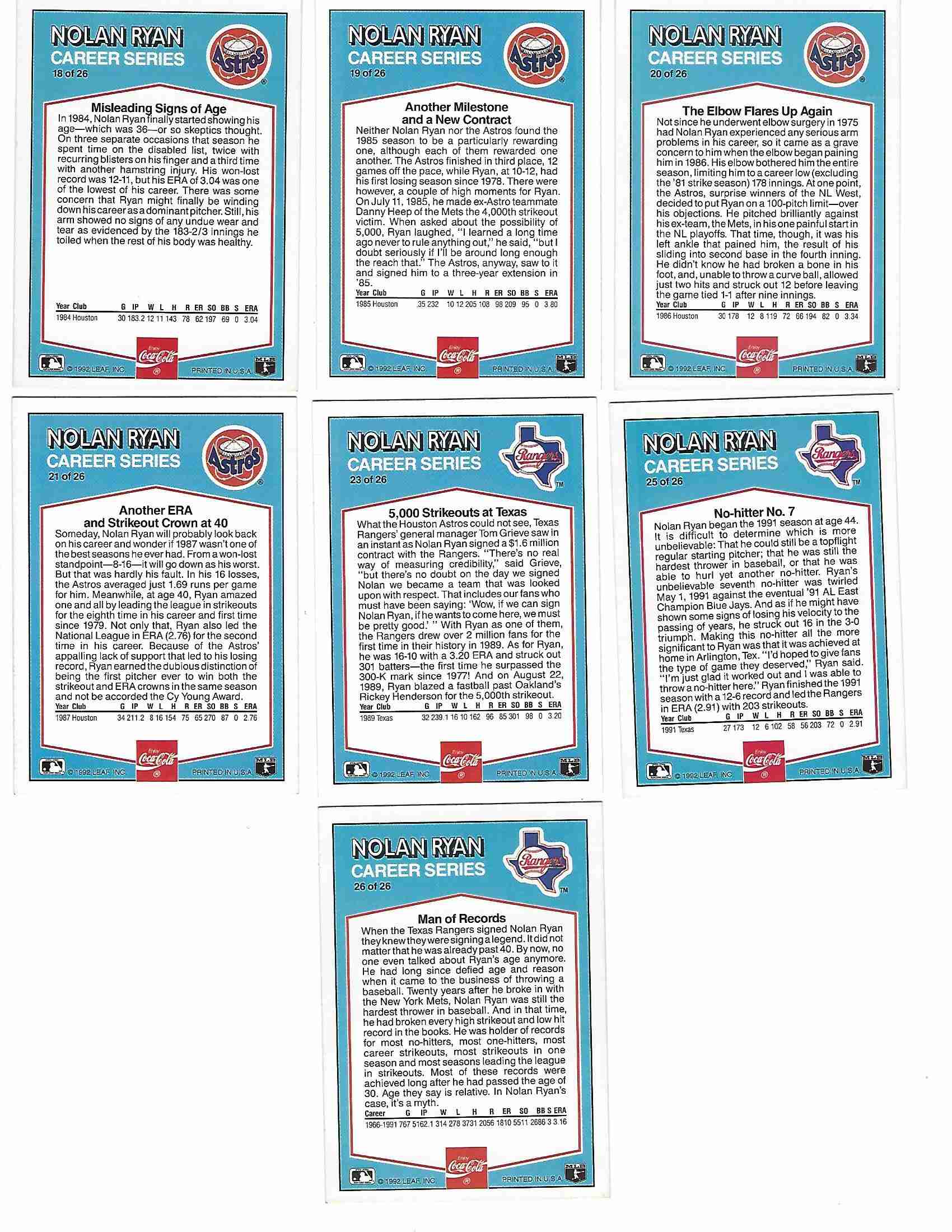 1992 DONRUSS NOLAN RYAN COKE 14 CARD LOT