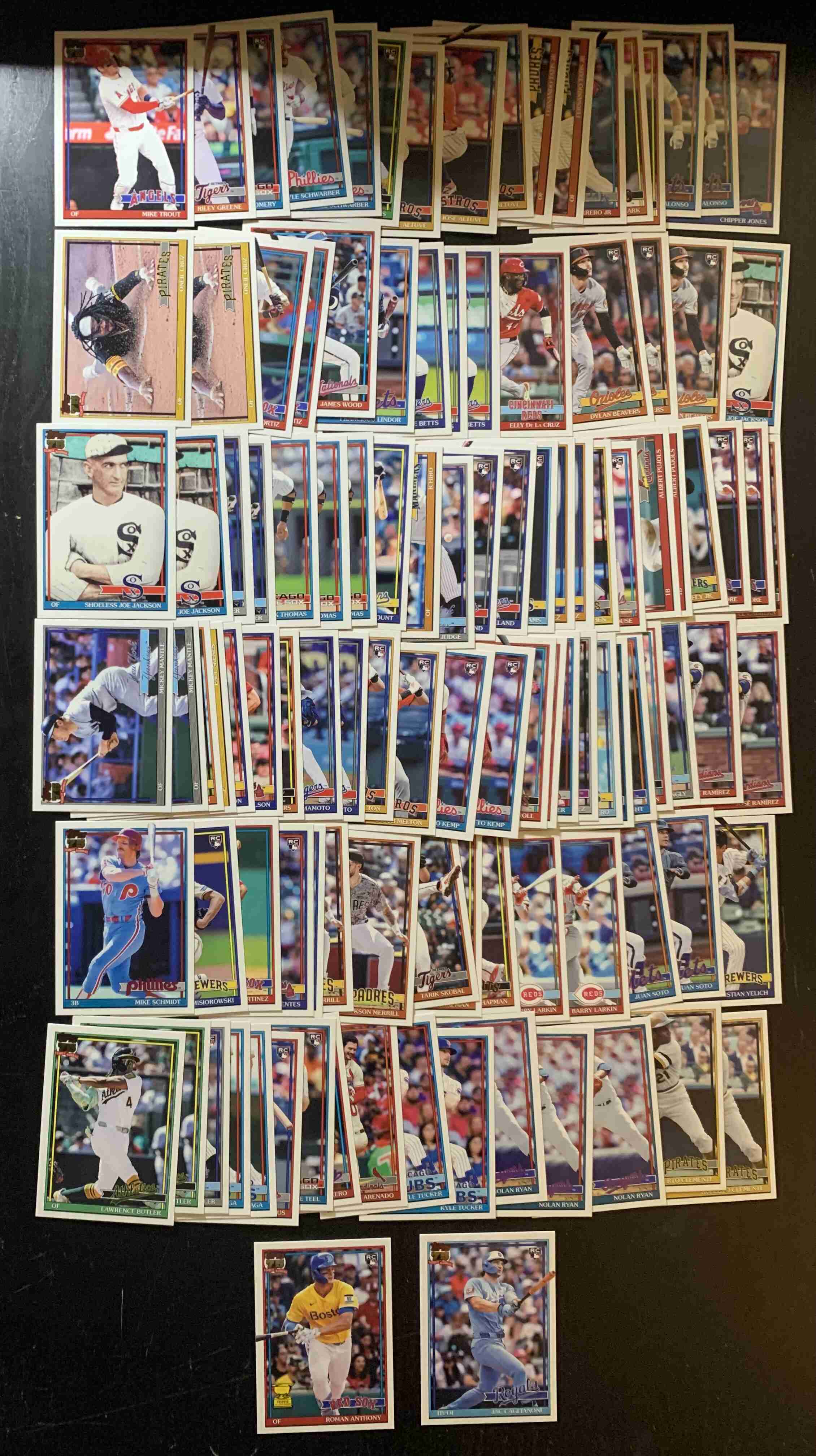 For Auction is a lot of 110 1991 35th Anniversary Inserts from the BRAND NEW 2026 Topps Series 1. Lot includes all cards pictured and does have duplication, with up to 4 copies of some cards. Overall cards are NM or better, though there may be outliers. Please refer to photo for more details. Cards ship securely with tracking via USPS.