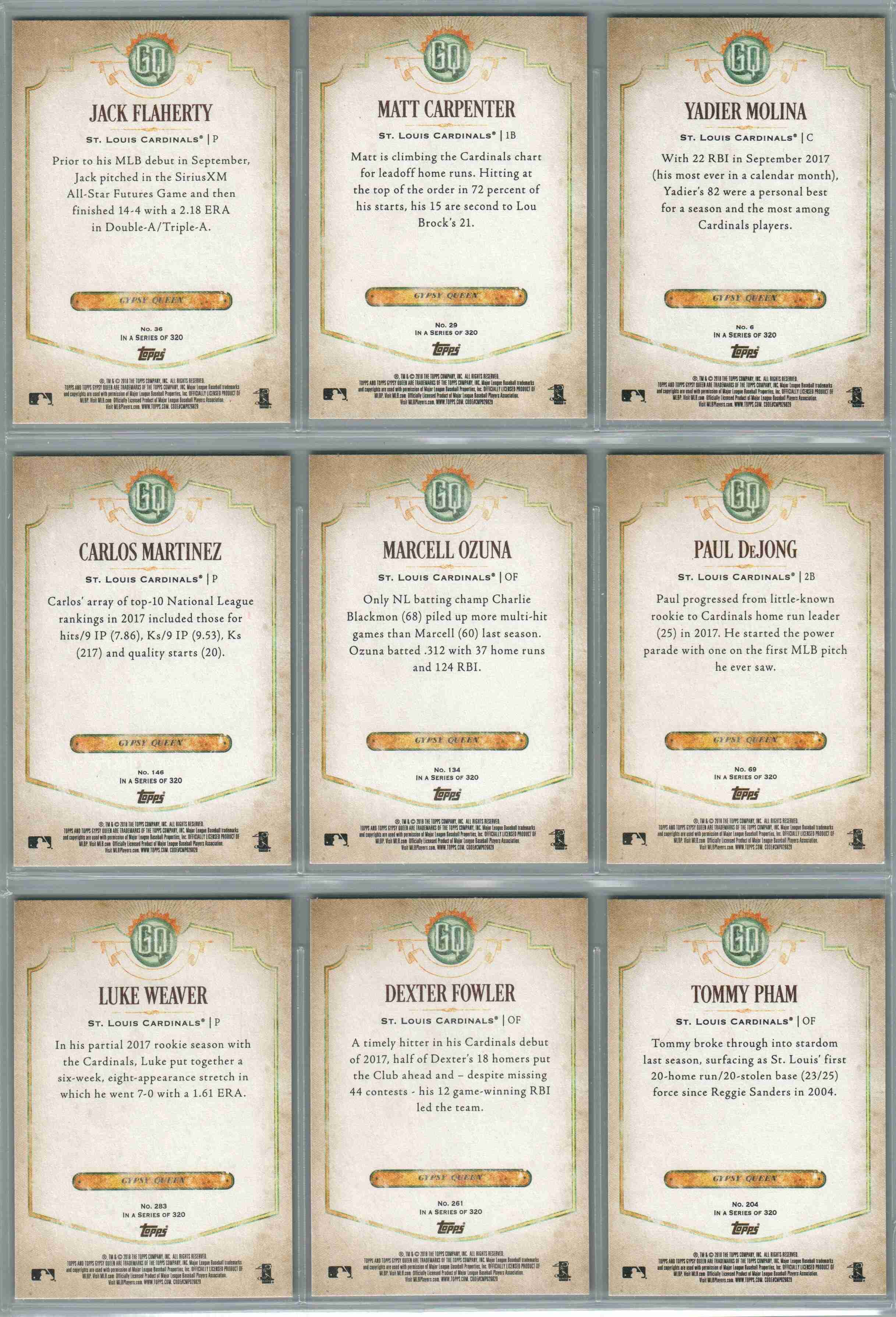 STL Cardinals 2018 Topps Gypsy Queen Team Set (9 cards)