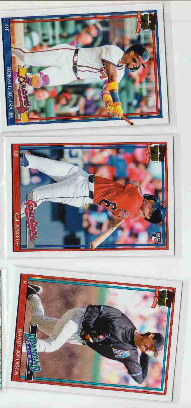 Please look at the photos for details on the cards' condition. The cards you are bidding on are the cards pictured. This auction is for 3 2026 Topps Series 1 1991 Topps 35th Anniversary inserts. They are Ronald Acuna Jr., Randy Johnson, and C.J. Kayfus RC Please view the image for a complete listing. You can use your judgment on the grade of the cards. If you have any questions or require more detailed photos, please don't hesitate to ask. Thank you!