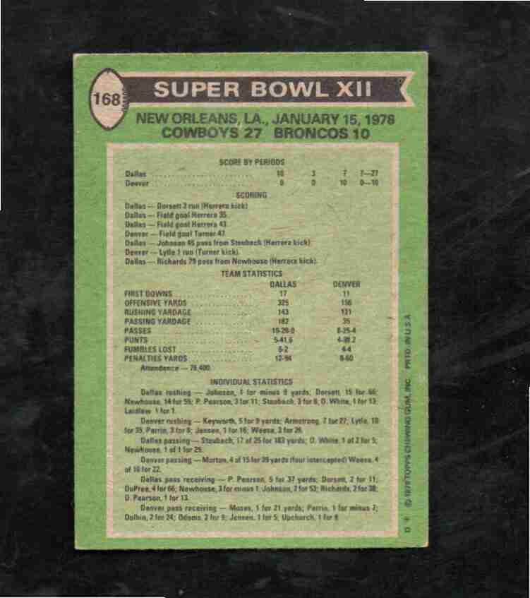 1979 # 168 SUPER BOWL XII Cowboys / Broncos