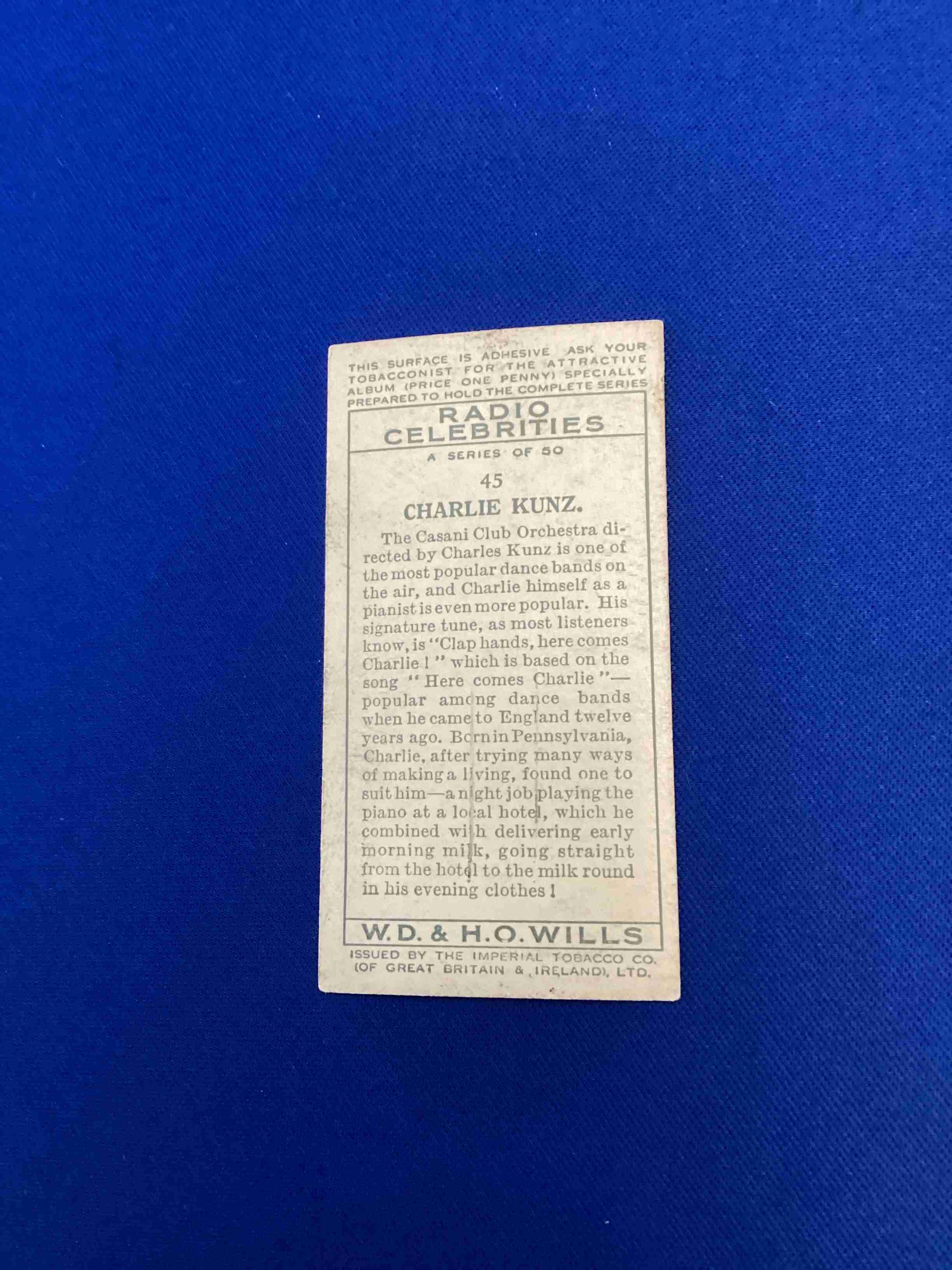 1934 Wills Radio Celebrities 1st Series Charlie Kunz