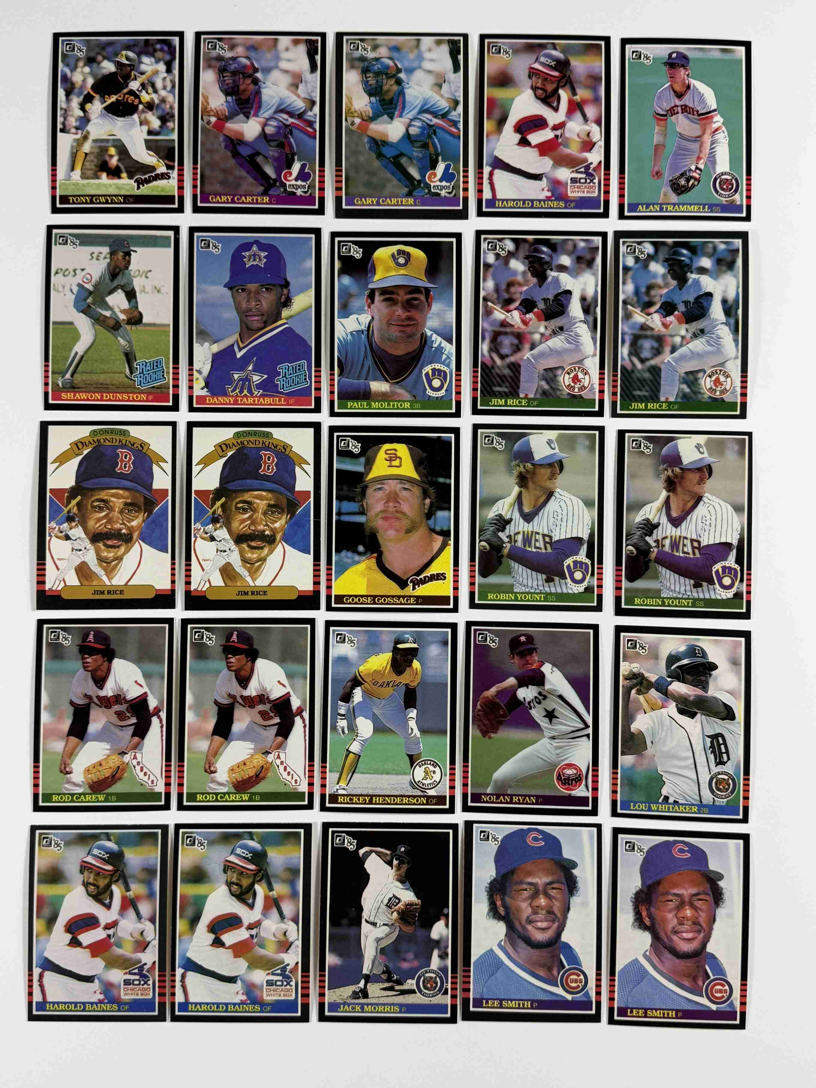 Huge lot of assorted 1985 Donruss baseball cards in high grade. NM-MT to MINT. Many mint cards that look like they are fresh out of the pack. Includes stars and sharp rookie cards of Kirby Puckett and Roger Clemens. These cards have sharp corners and high gloss. Beautiful cards. See all the stars pictured. Also includes a Nolan Ryan and Rickey Henderson as well as other stars & HOFers. Great lot if you want to upgrade a set or for dealer inventory.
