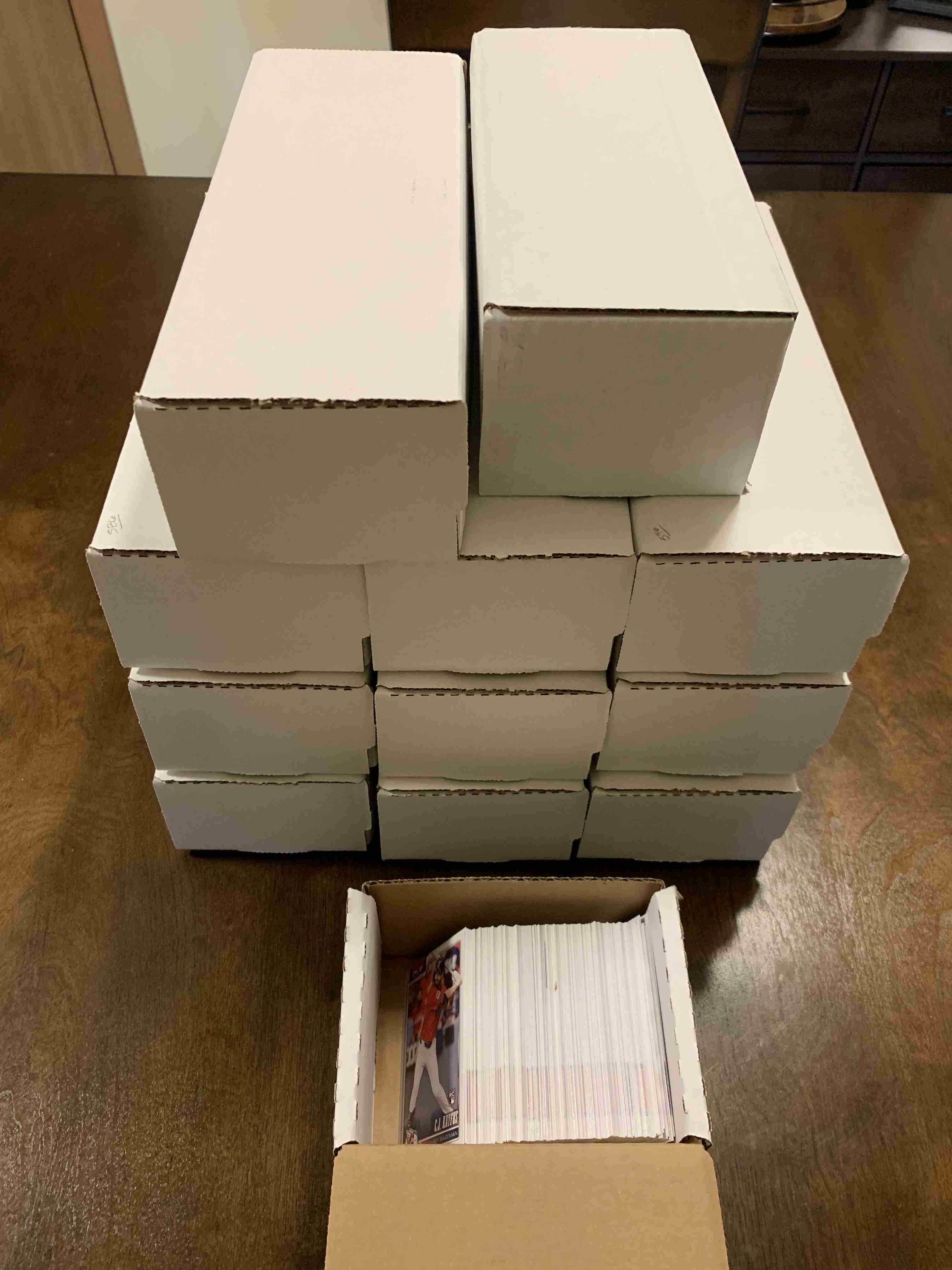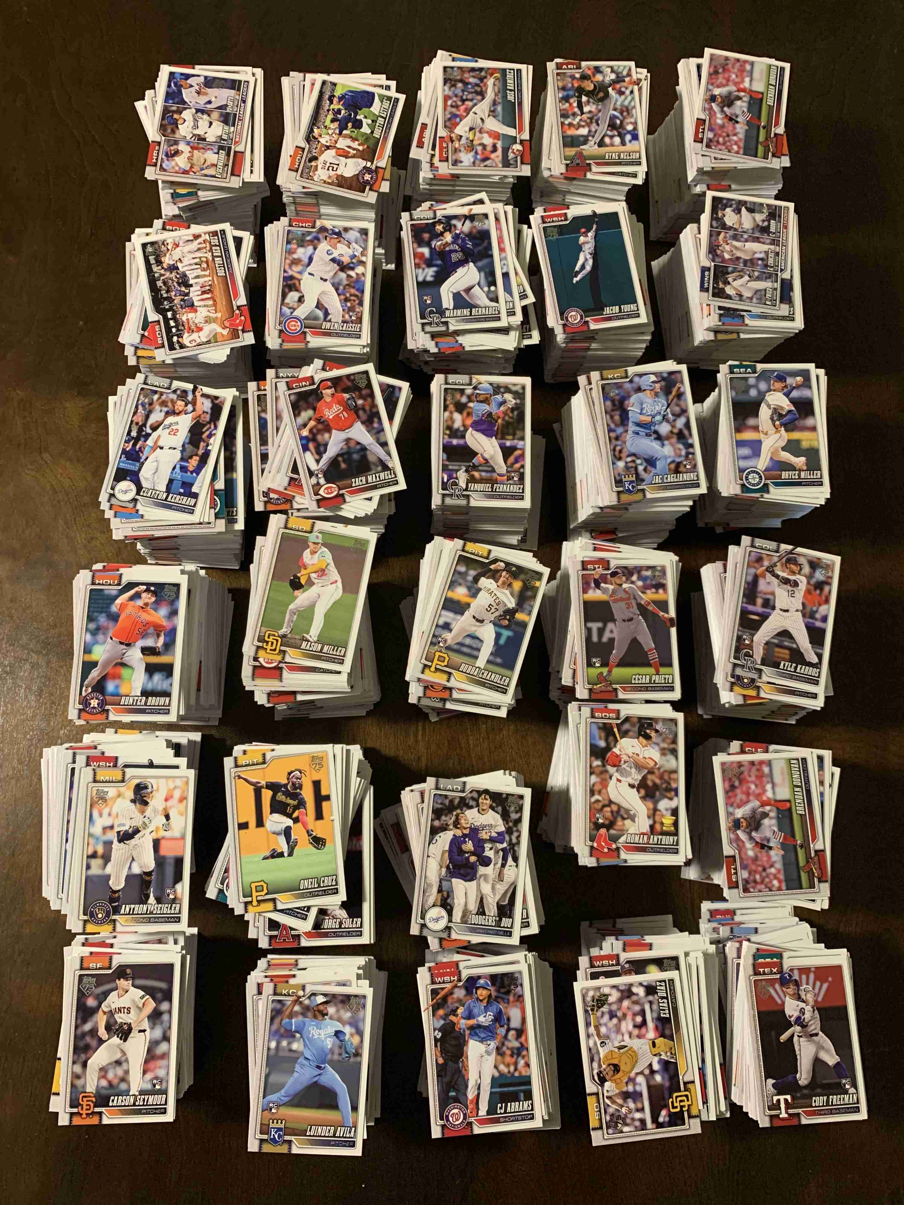 For auction is a HUGE 6,000+ Card Lot of the BRAND NEW 2026 Topps Series 1. This is ALL of the Base Cards from assorted breaks including 9 Jumbo Boxes, 4 Hobby Boxes, and roughly 50 Hanger Boxes. Lot fills 10x 550 Ct. Boxes, 1 500 Ct. Box, and about half of a 330 Ct. Box. Overall Cards cards are NM or better, though there are some outliers. Please refer to photos for more details. Cards will ship securely with Tracking. (will attempt to use USPS but box is HEAVY, so may need to use alternatives)