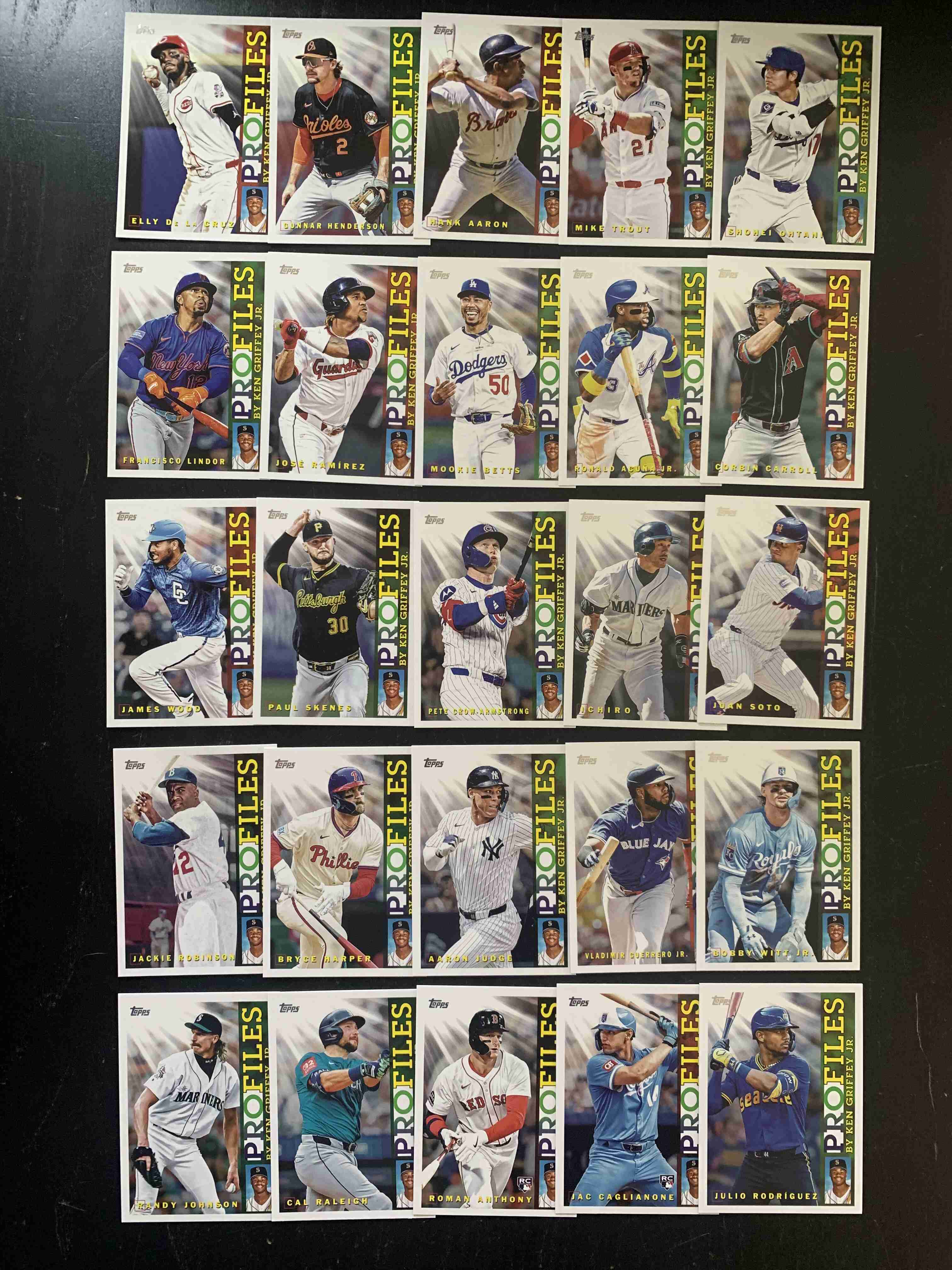For auction is a complete 25 Card Profiles Insert Set from the BRAND NEW 2026 Topps Series 1 Set. Set includes Stars and Rookies. Overall Cards are NM or better, though there may be some outliers. Please refer to photos for more details. Cards ship securely with tracking via USPS