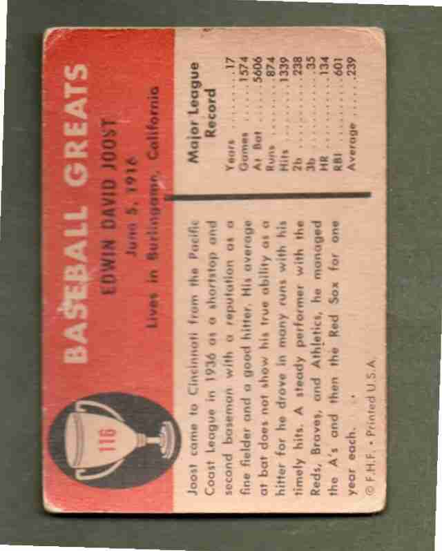 1961 Fleer Baseball Greats #116 EDDIE JOOST
