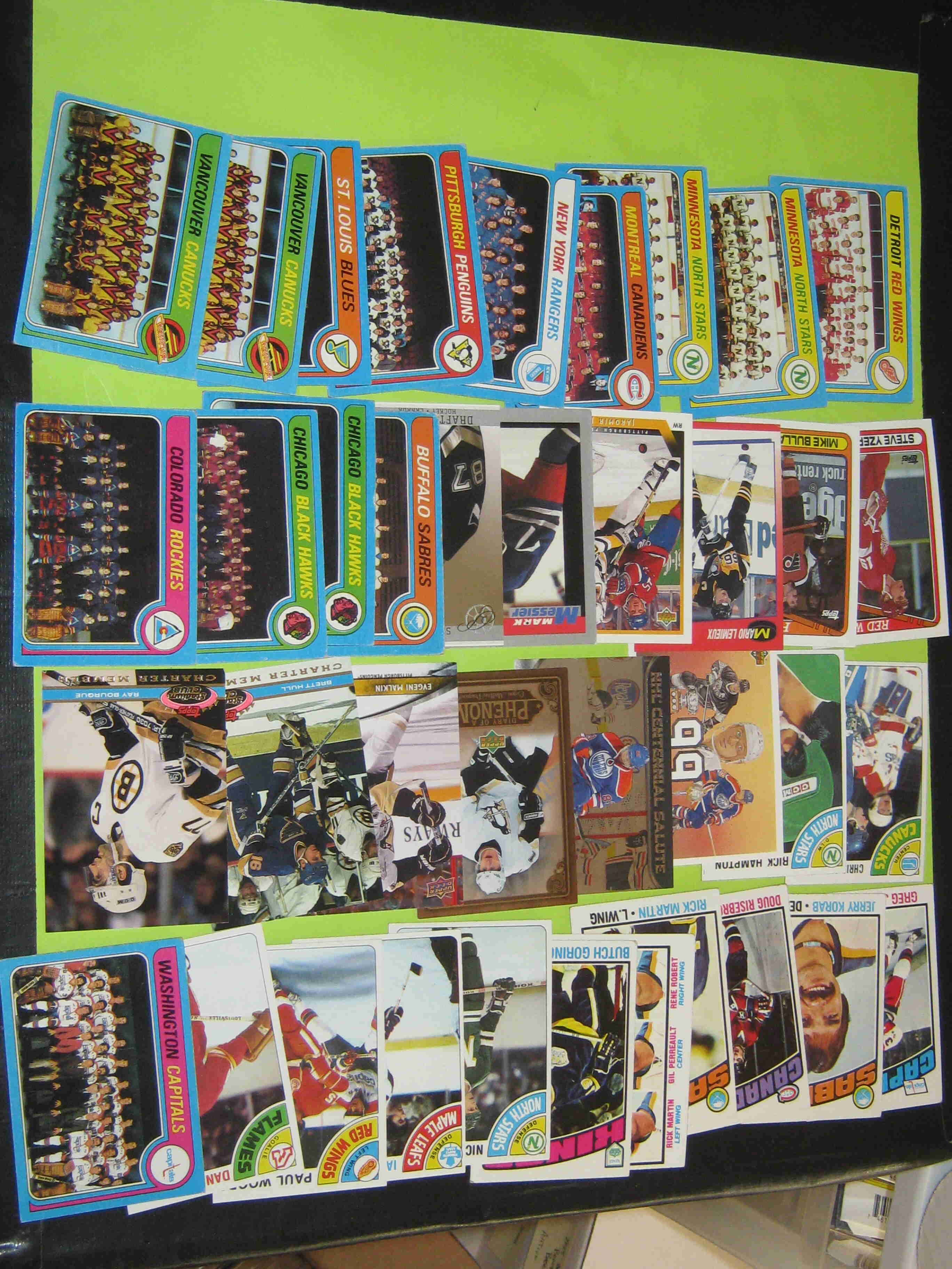 Large lot of about 70 hockey cards and posters