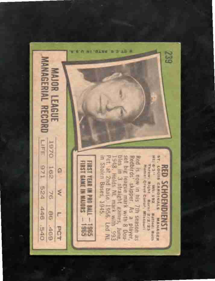 1971 Topps # 239 Mgr. RED SCHOENDIENST St. Louis Cards