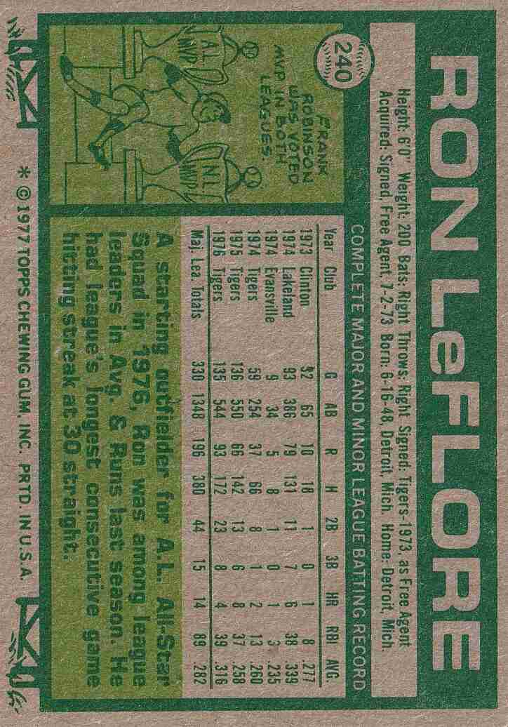 1977 Topps #240 Ron LeFlore Tigers AL AS