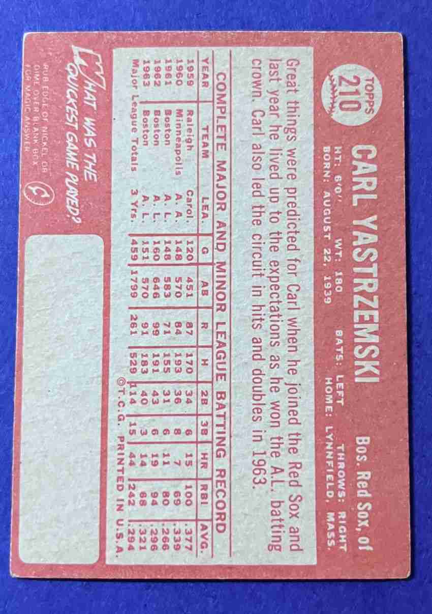64 Topps CARL YASTRZEMSKI #210 HOF!