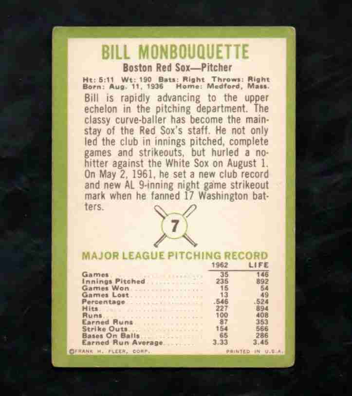 1963 Fleer # 7 BILL MONBOUQUETTE Red Sox