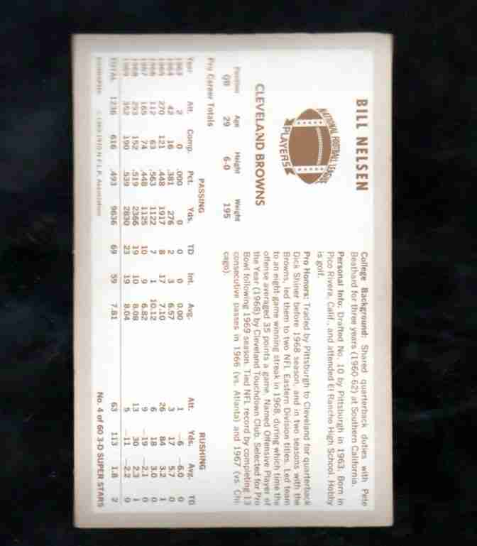 1969 - 1970 3-D Superstars # 4 BILL NELSON Cleveland Browns