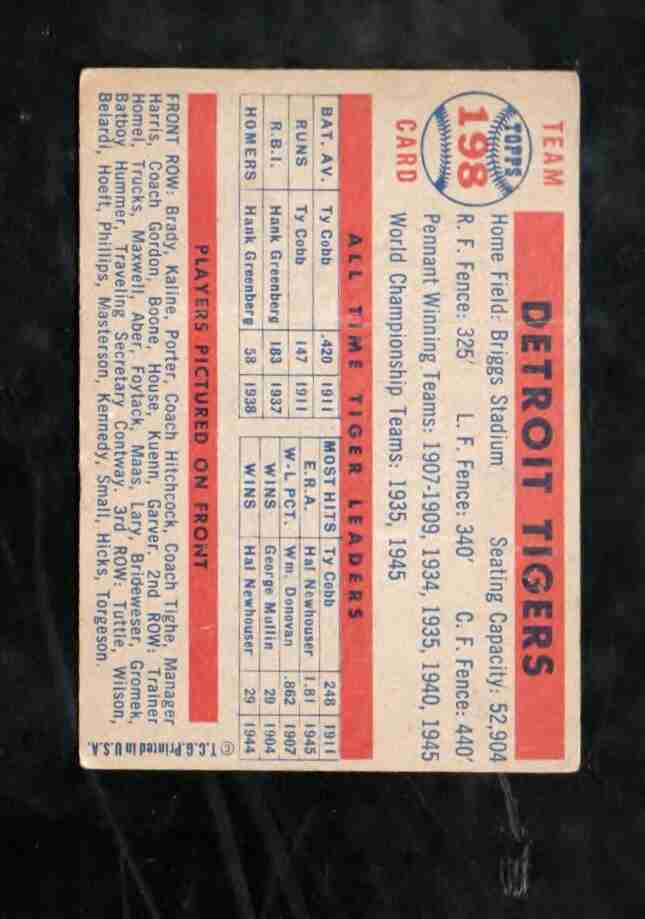 1957 Topps # 198 DETROIT TIGERS TEAM