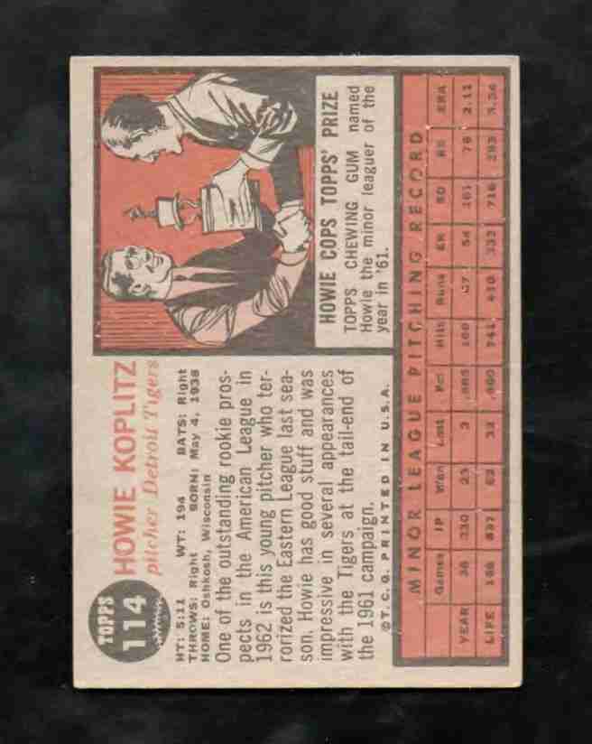 1962 Topps # 114 HOWIE KOPLITZ Detroit Tigers