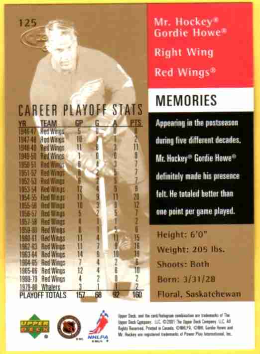 Gordie Howe 2001 Upper Deck Immortals mr Hockey #125