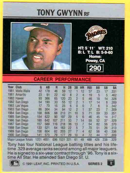 Tony Gwynn #290 1991 Leaf