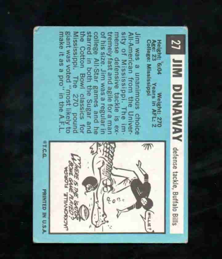 1964 Topps # 27 JIM DUNAWAY Buff. Bills Short Print Card