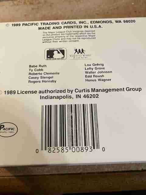 1989 PACIFIC 220 CARDS BASEBALL LEGENDS SET (EX). ENCLOSED IMN THE ORIGINAL BOX. PRINTS OF THE LEGENDS - HOF - SUPERSTARS