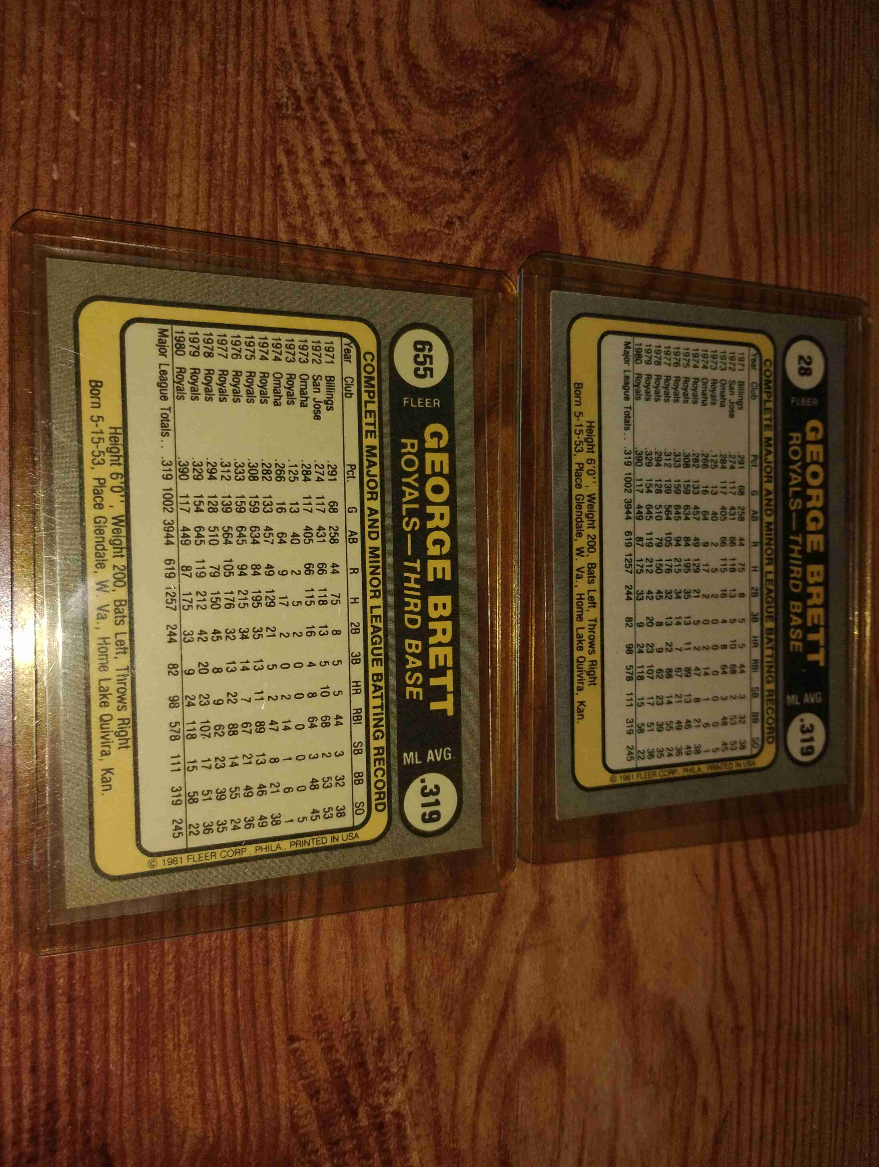 GEORGE BRETT 1981 FLEER CARDS #28 & 655