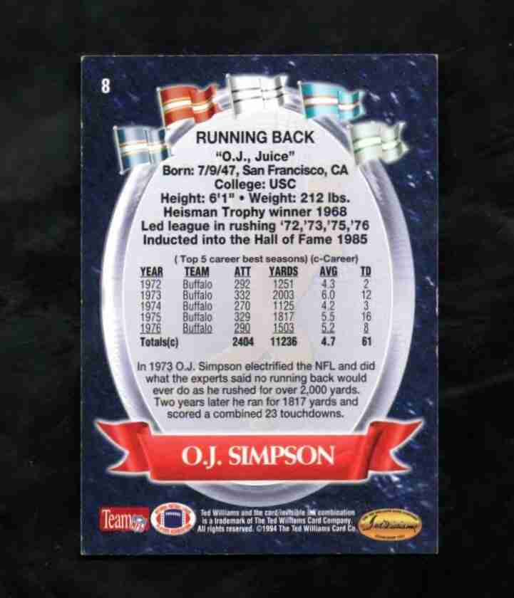 1994 Ted Williams Card Co # 8 O.J. SIMPSON