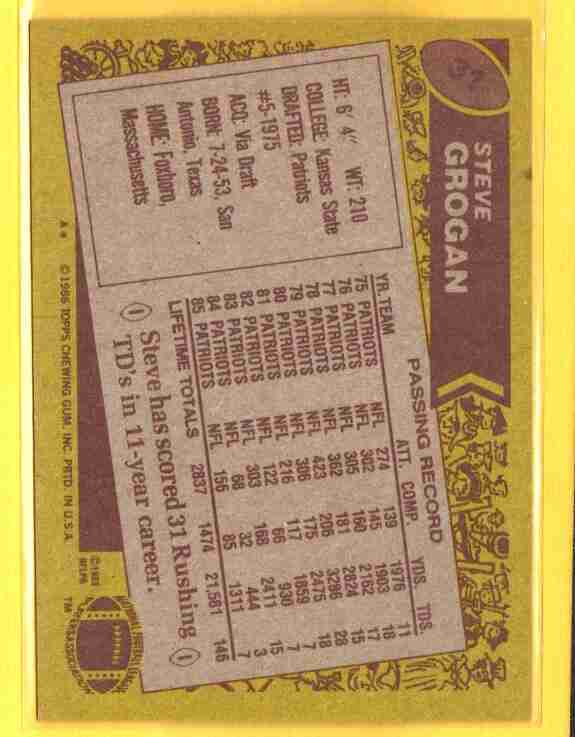 Steve Grogan #31 1986 Topps