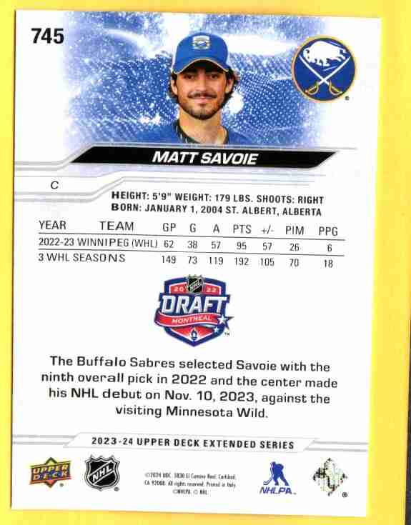 Matt Savoie #745 – 2023–24 Upper Deck Extended Series Para