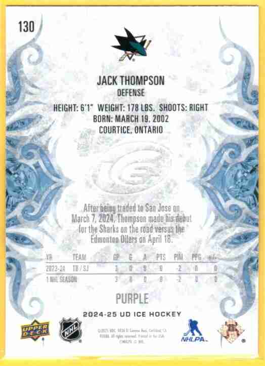 Jack Thompson – 2024-25 Upper Deck Ice Purple Rookie #130