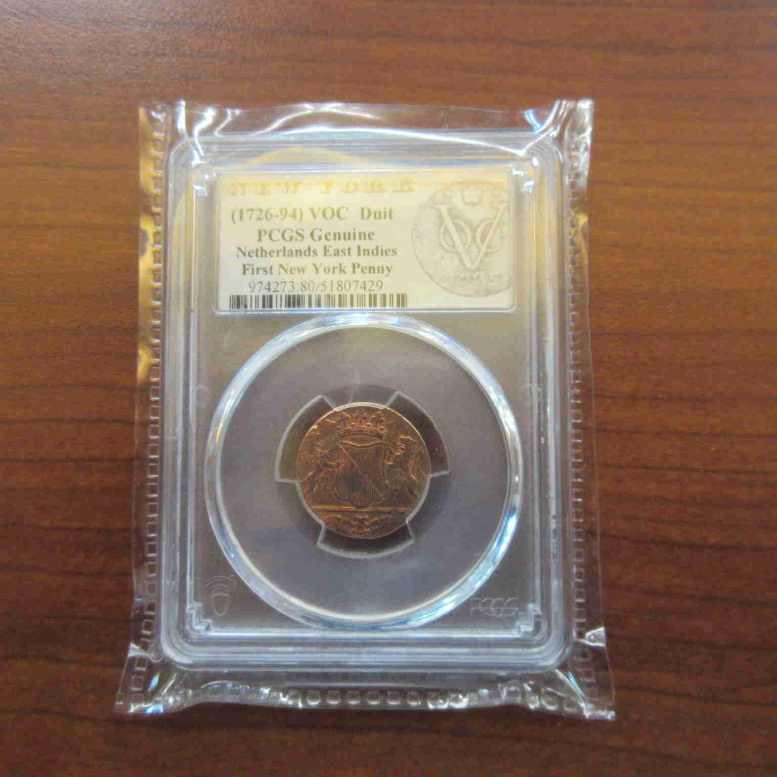 This is a 1790 VOC Duit PCGS Genuine Netherlands East Indies First New York Penny in nice condition.