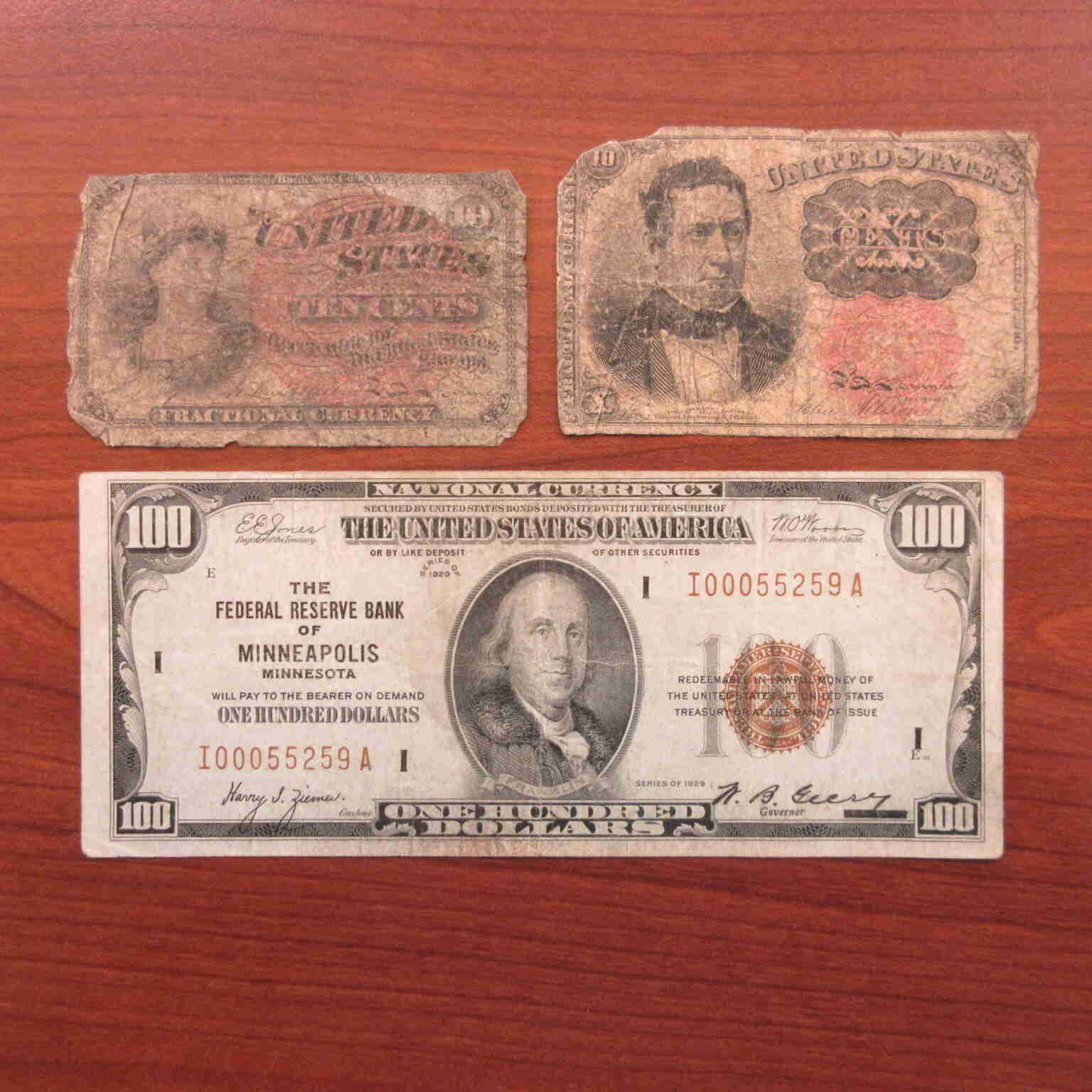 1929 US 100 Dollar Bank Of Minnesota+(2) Old Fractional Cur