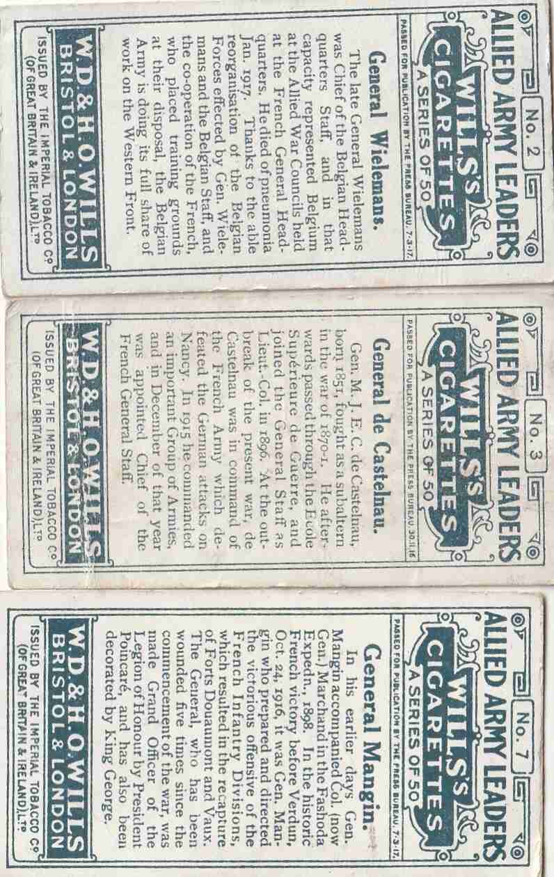 9-1917 Will's Cigarettes Allied Army Leaders Lot 1