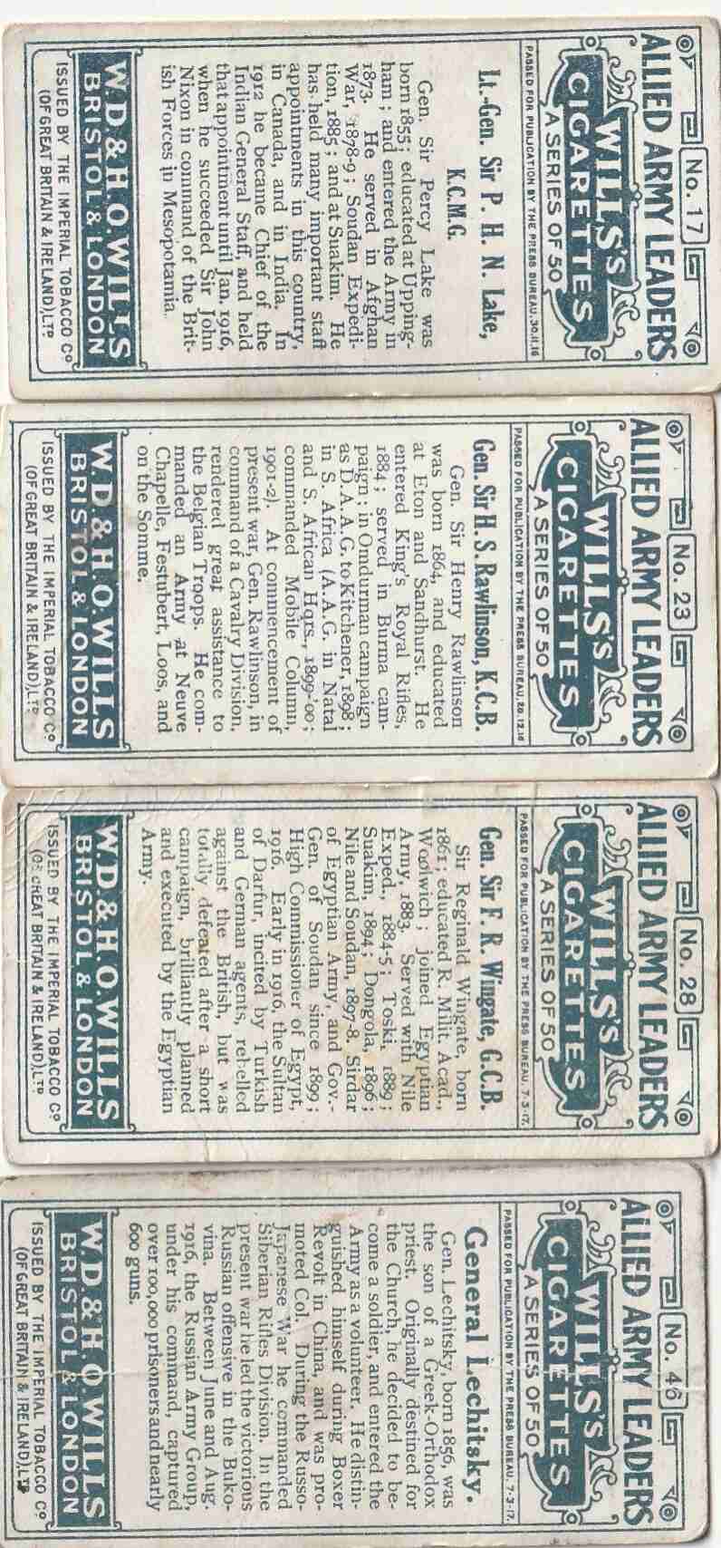 8-1917 Will's Cigarettes Allied Army Leaders Lot 2