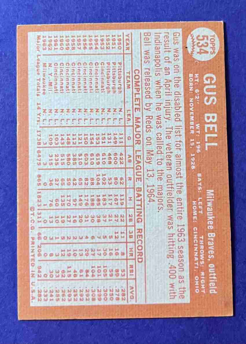 64 Topps GUS BELL Hi #534 ++