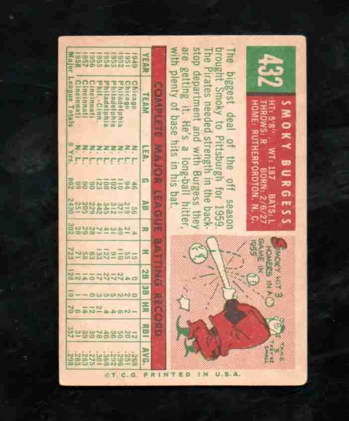 1959 Topps # 432 SMOKY BURGESS Pitt. Pirates
