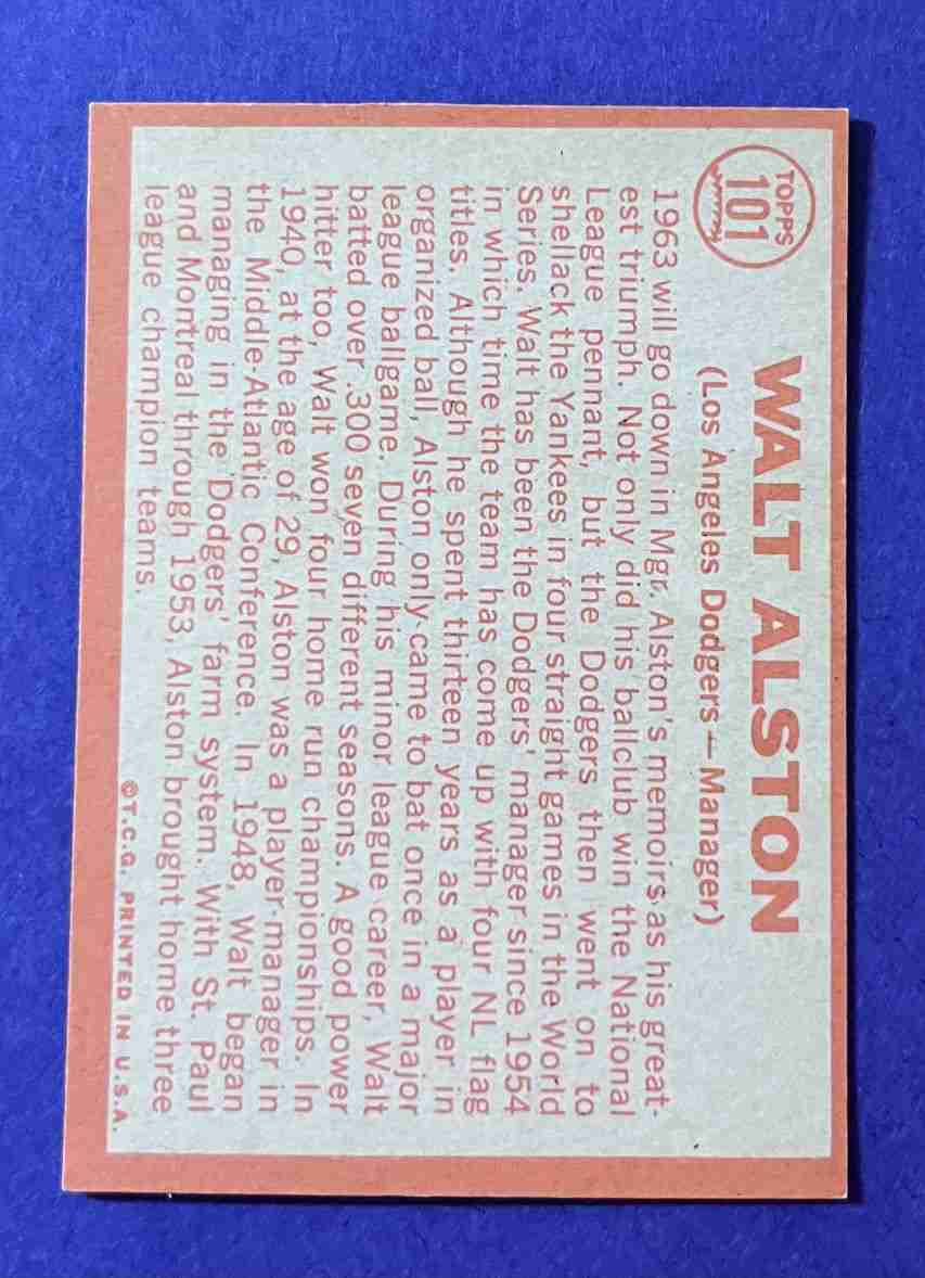 64 Topps WALTER ALSTON #101 HOF!