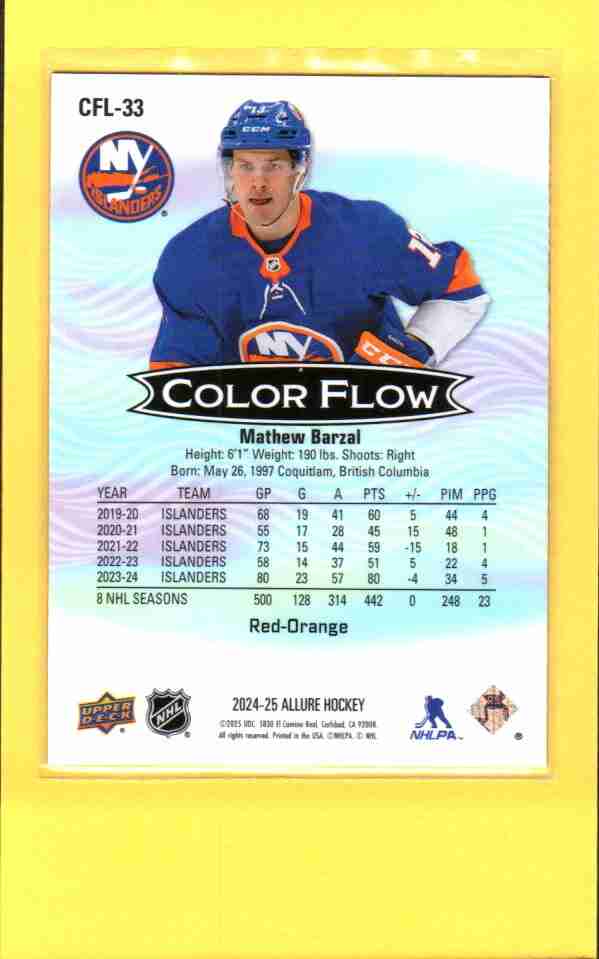 Mathew Barzal [Red-Orange Spectrum] Color Flow #CFL-33 – 2024-25 Upper Deck Allure.
