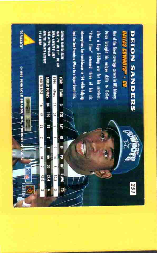 1995 Pinnacle Deion Sanders #251 card:
