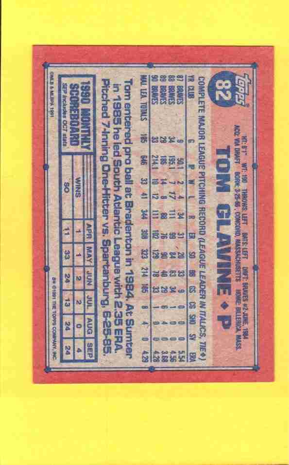 Tom Glavine #82 1991 Topps