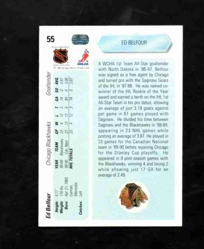 1990/91 Upper Deck # 55 ED BELFOUR Blackhawks