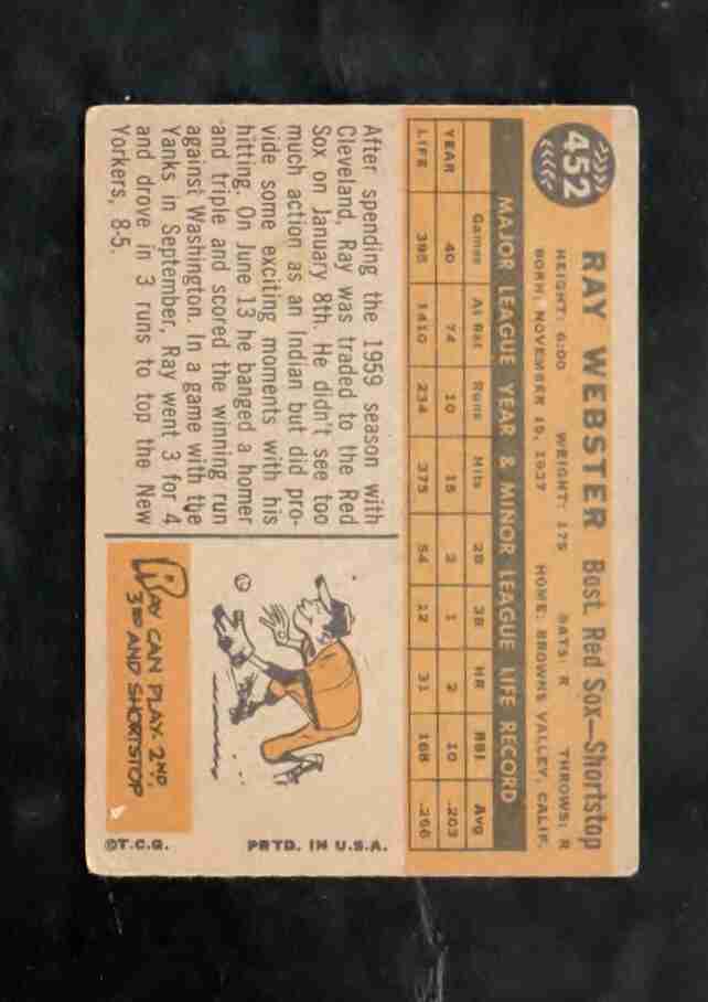 1960 Topps Semi Hi # 432 RAY WEBSTER Red Sox