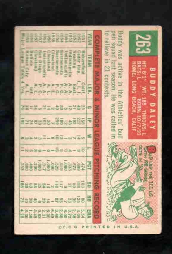 1959 Topps # 263 BUDDY DALEY KC Athletics