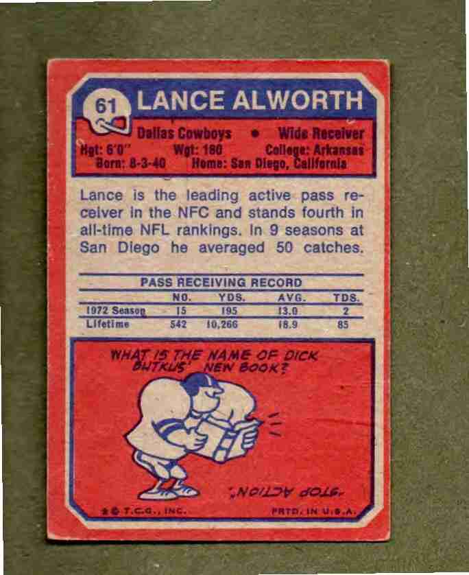 1973 Topps # 61 HOFer LANCE ALLWORTH Cowboys