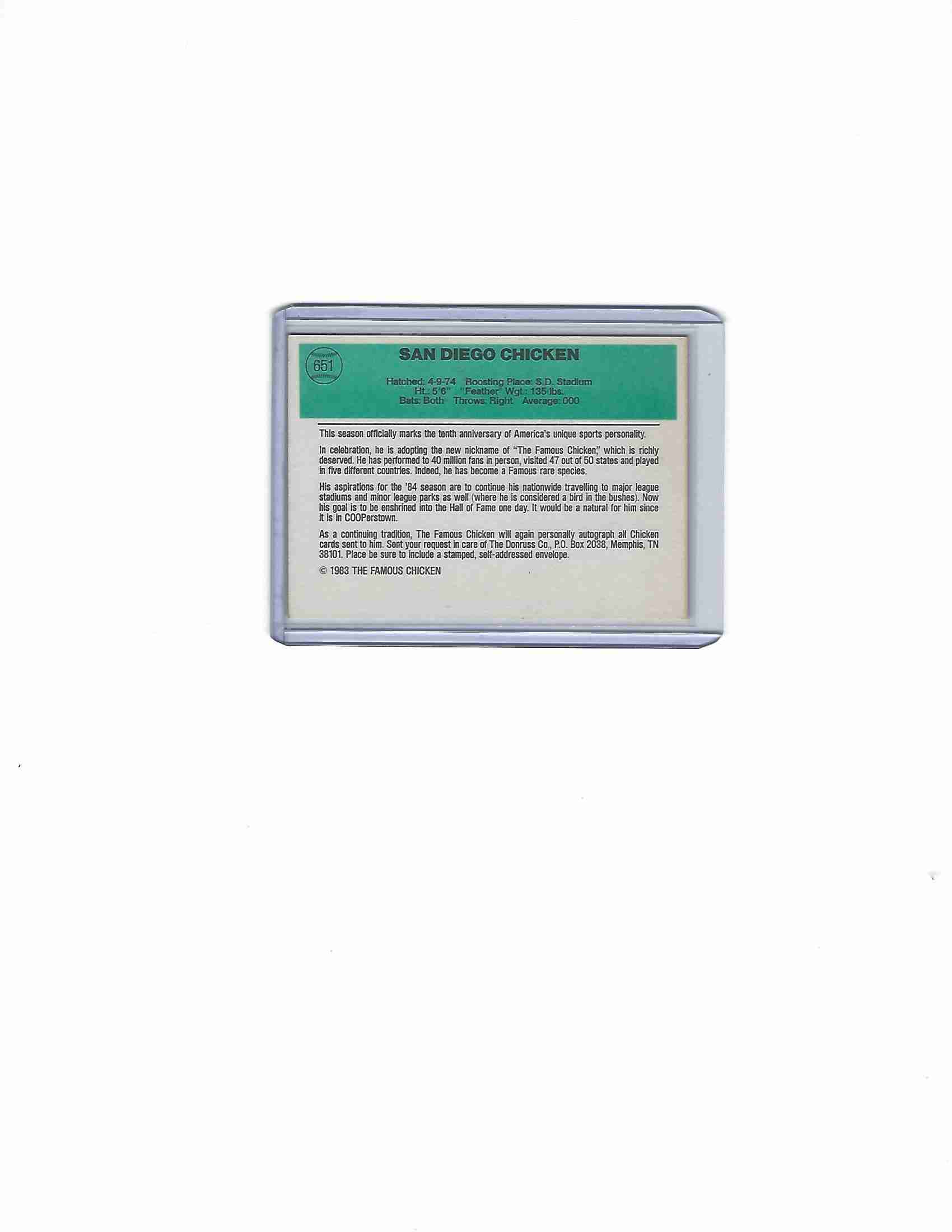 1983 SAN DIEGO CHICKEN #651